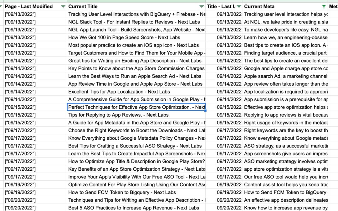 We’ve been thrilled with the impact of data driven title changes that we’ve made on our rummy page. However, as with most of the experiments (We conduct a lot of experiments, but publish only the ones that work), change may not improve impression/clicks/positions. So, in such cases, we revert the changes and try with another iteration. All this is great, but the process is painful if done manually. Thus we build a tool to capture all the changes that are made to pages every x hours. (One big ASO and SEO lesson I learned along the way is – hour is the optimum unit for measuring any marketing effort, so those who want to run it every day can simply use 24 – as there are 24 hours in a day). Even our free app rank tracker uses hour as the unit for cron jobs.